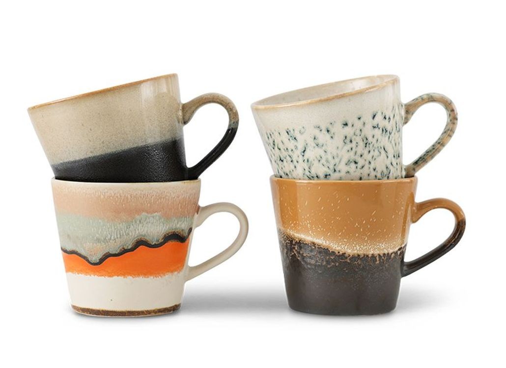 Vychutnejte si svou oblíbenou kávu s nádechem poctivého retro designu. Tato exkluzivní sada 4 keramických hrnků na cappuccino z kolekce 70s Verve přináší do vaší kuchyně hřejivou estetiku sedmdesátých let. Díky většímu objemu 300 ml a pohodlnému uchu jsou tyto hrnky ideální volbou pro bohaté cappuccino s nadýchanou pěnou, horkou čokoládu nebo velký ranní čaj.