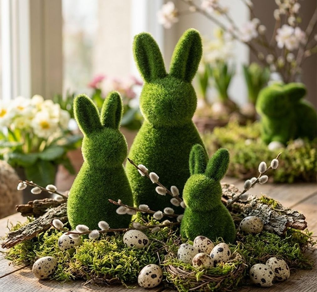 Tip pro styling: Vytvořte si malé "lesní zátiší" kombinací několika těchto králíků s přírodními větvičkami jív (kočiček), křepelčími vajíčky a trochou opravdového mechu.