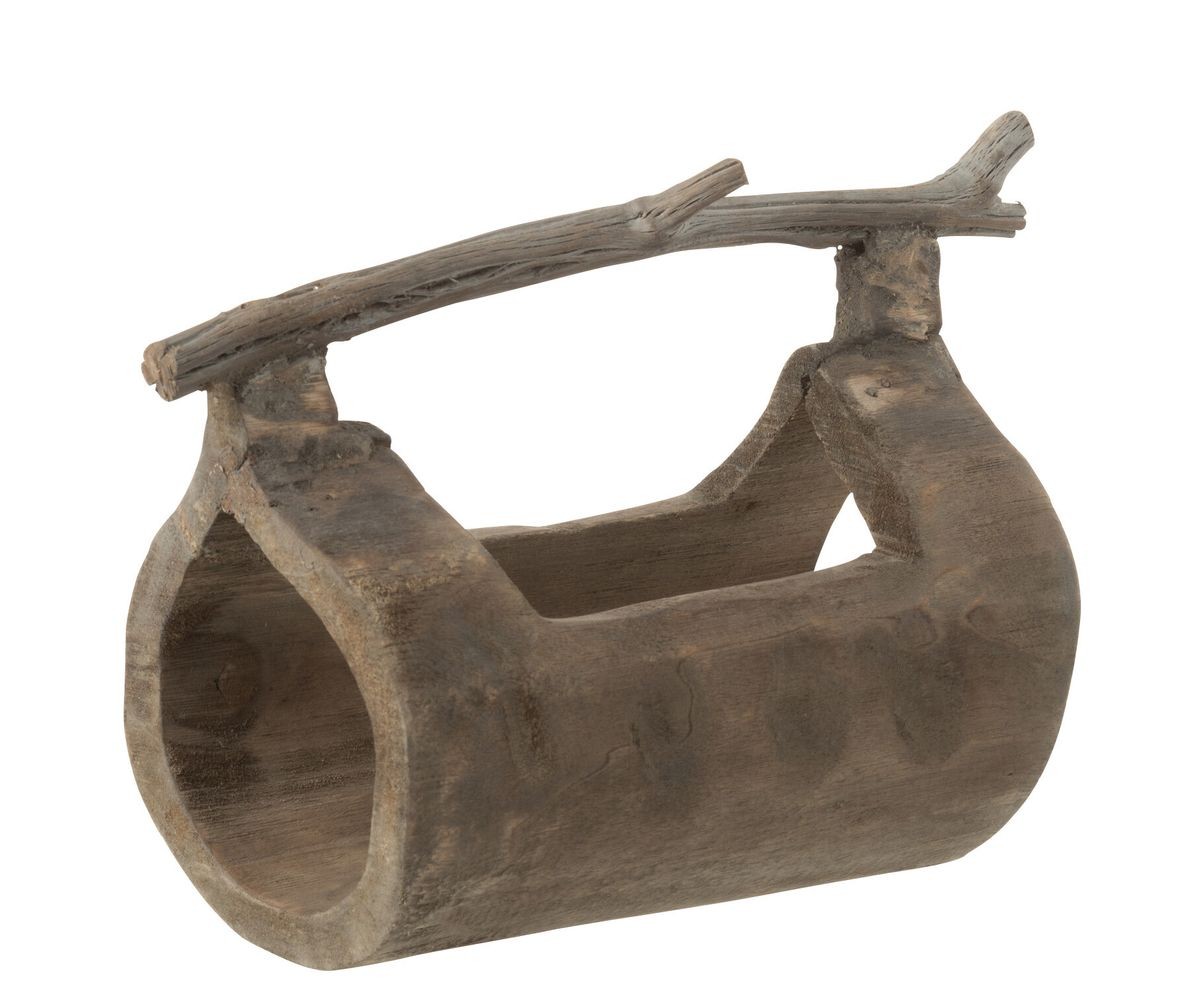 Tento stojan není jen obyčejný držák. Je to sochařský prvek vytvořený ze skutečného, vydlabaného kusu logu nebo silnější větve, který si zachovává svou surovou, zvětralou a rustikální texturu. Hlavním vizuálním prvkem je pevná a autentická rukojeť, která je zformována z přírodní větve, což dodává stojanu nezaměnitelný venkovský a organický šarm. Každý kus je díky přirozeným variacím v kresbě a tvaru dřeva absolutním originálem.
