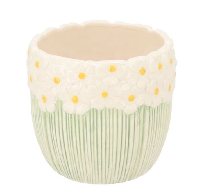 Dopřejte svým malým zeleným pokladům stylový domov! Představujeme vám keramický obal na květináč Jane Flower, který vnese svěžest a radost do každého interiéru. Tento bílo-zelený obal s Ø 10 cm a výškou 9 cm je dokonalou kombinací funkčnosti a romantického designu, ideální pro sukulenty, kaktusy, malé bylinky nebo jarní cibuloviny.