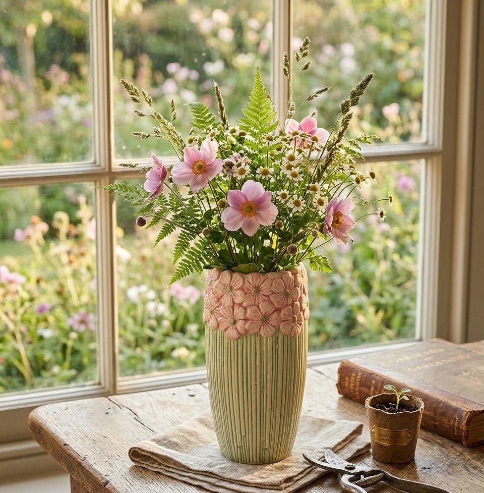 Proměňte svůj domov v rozkvetlou zahradu, bez ohledu na roční období, s touto okouzlující keramickou vázou Jane Flower.