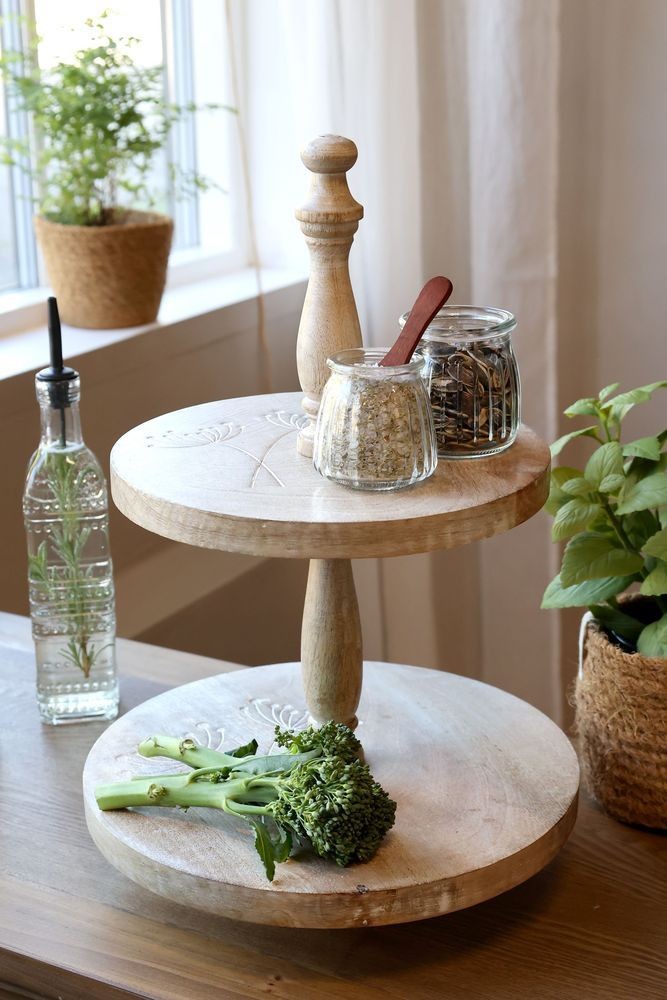 Tip pro váš domov: Etažér nemusí nutně zůstat jen v kuchyni nebo jídelně! Skvěle se hodí také do koupelny nebo ložnice jako nádherný stojan na uspořádání vašich oblíbených parfémů, krémů a kosmetických štětců. Během svátků z něj zase snadno vytvoříte základ pro sezónní dekorace (například na podzimní dýně nebo vánoční ozdoby).