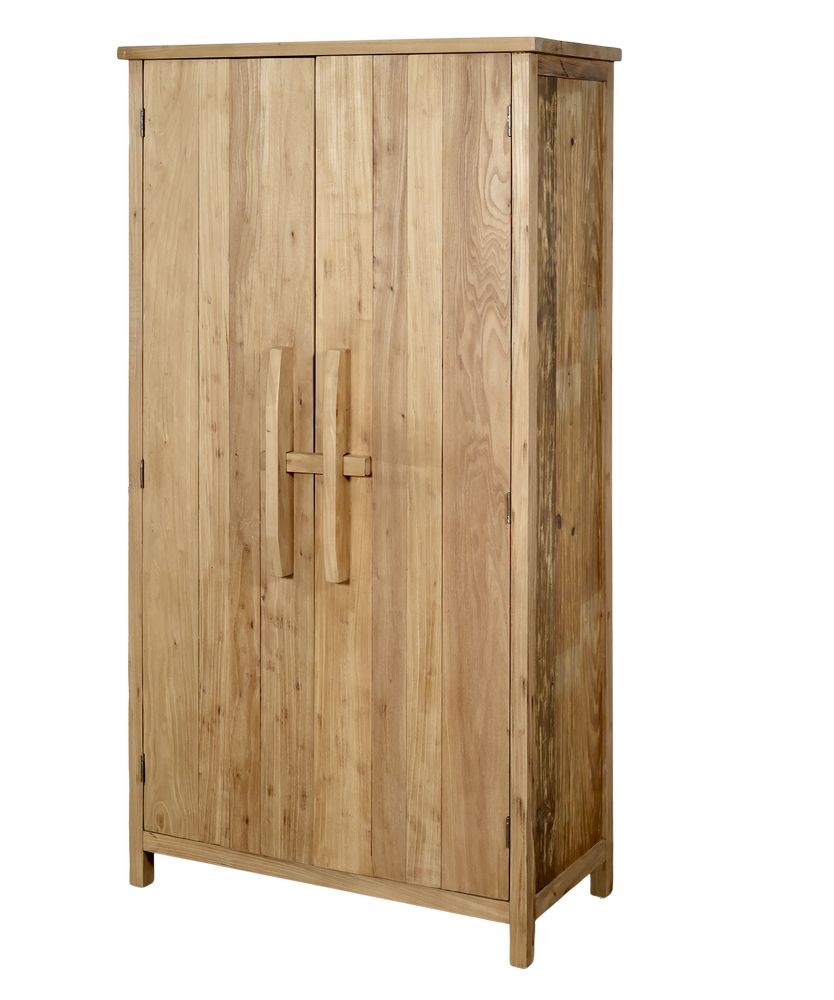 Exkluzivní materiál: Skříň je vyrobena z vysoce kvalitní kombinace pečlivě vybraného jilmového a borovicového dřeva, s robustní překližkovou zadní stěnou. Jilm je známý svou krásnou, zvlněnou kresbou a mimořádnou odolností, což zajišťuje, že každý kus je unikátní a dlouho vydrží.