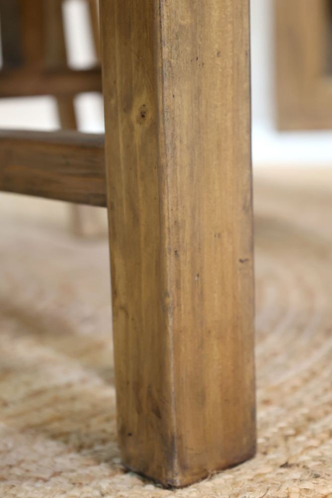 Teplý odstín antik: Příjemná povrchová úprava v barvě "hnědá antik" s lehkou patinou dodává stolu jemný rustikální šarm. Povrch si zachovává přirozený vzhled dřeva, který skvěle zapadne do venkovského, boho i klasického moderního interiéru.