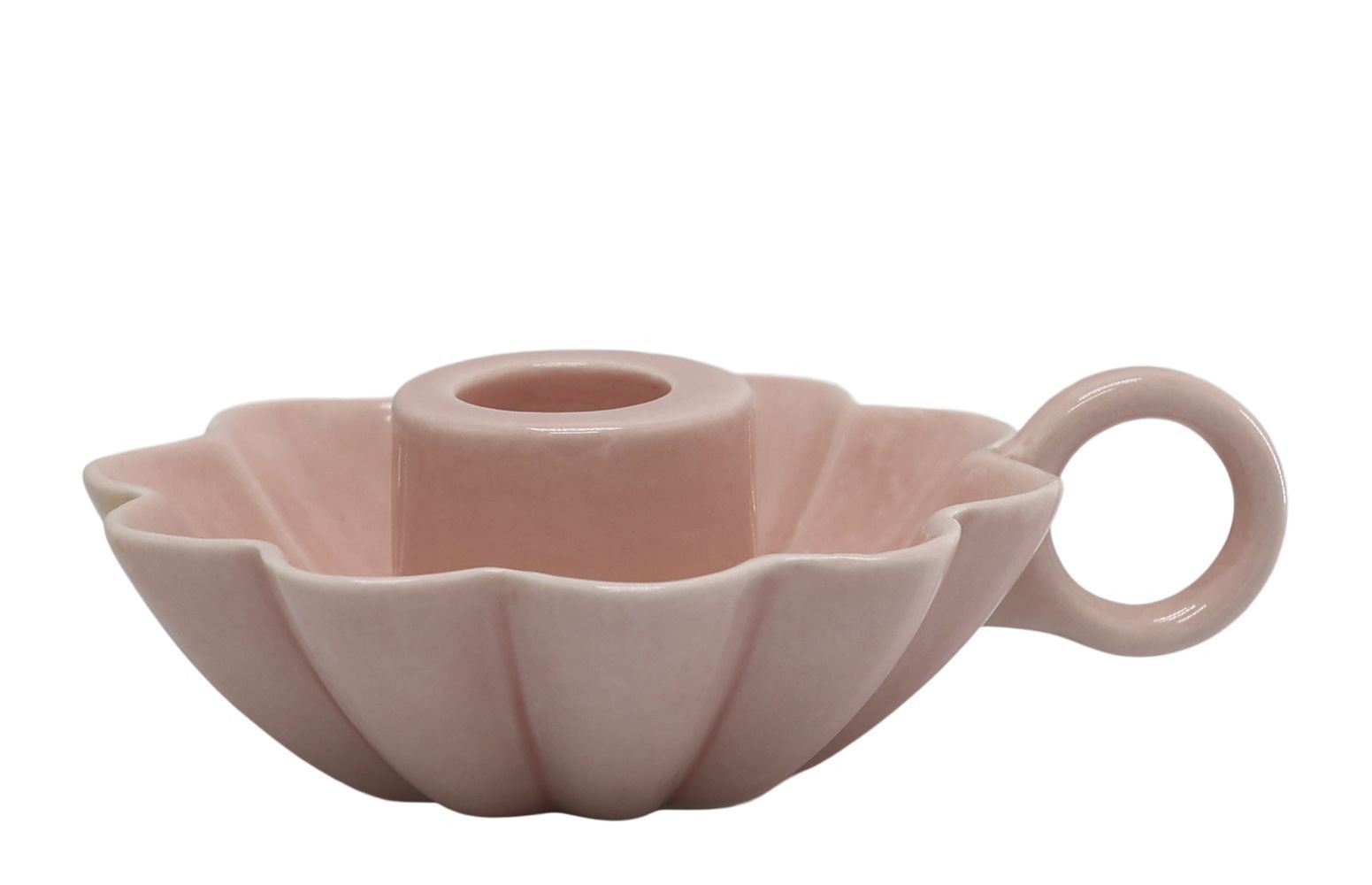 Tento krásný kousek je nejen praktický, ale také vizuálně úchvatný. Jeho design s vlnitými okraji připomíná jemné okvětní lístky a dodává svícnu organický, "soft focus" vzhled, který se skvěle hodí do moderních i tradičnějších interiérů. Uprostřed je přesně navržen tak, aby bezpečně pojal standardní úzkou svíčku o průměru 2 cm. Stylová prstencová rukojeť na boku není jen designovým prvkem, ale také praktickým nástrojem pro snadné a bezpečné přenášení svícnu bez nebezpečí popálení.