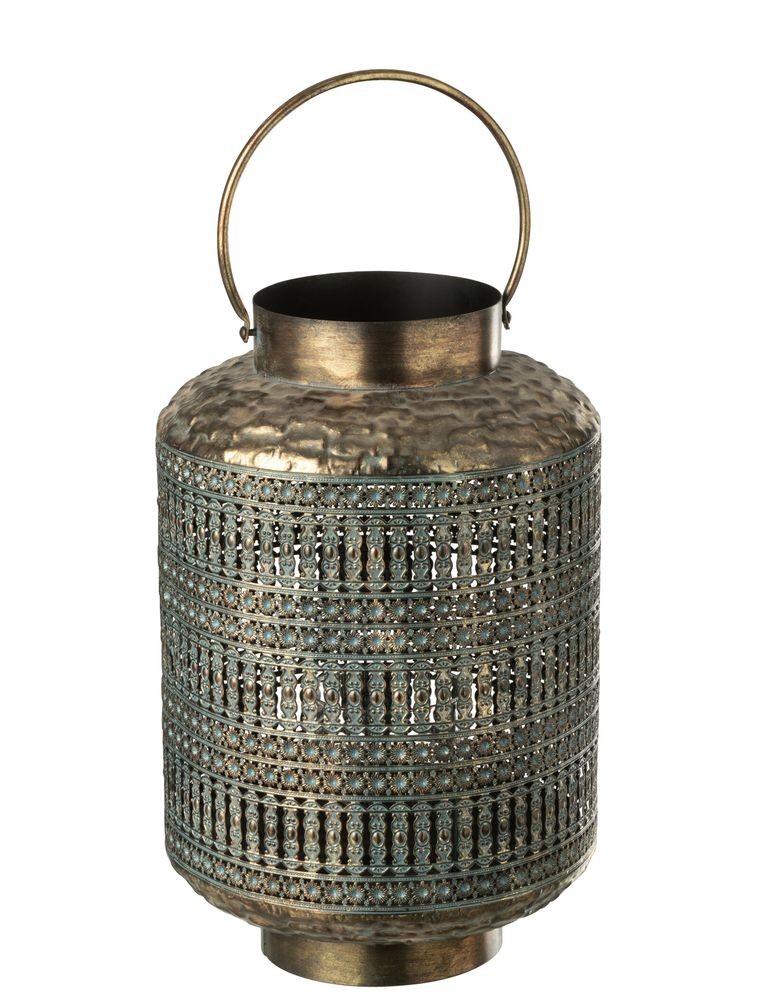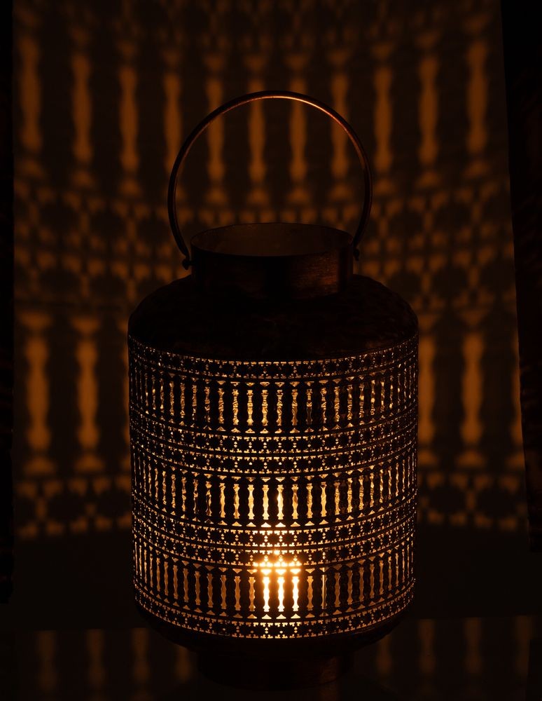 Lucerna je vyrobena z bytelného kovu a ošetřena bohatou starobylou patinou, která jí dodává nezaměnitelný vzhled vzácného historického artefaktu. Plášť lucerny je posetý propracovaným, detailně vyřezávaným geometrickým ornamentem. Jakmile uvnitř zapálíte svíčku, stěny se rozzáří a vrhnou do okolního prostoru i na stěny dechberoucí stíny, které okamžitě zútulní každou místnost. Nechybí ani praktické a robustní madlo pro bezpečné přenášení.