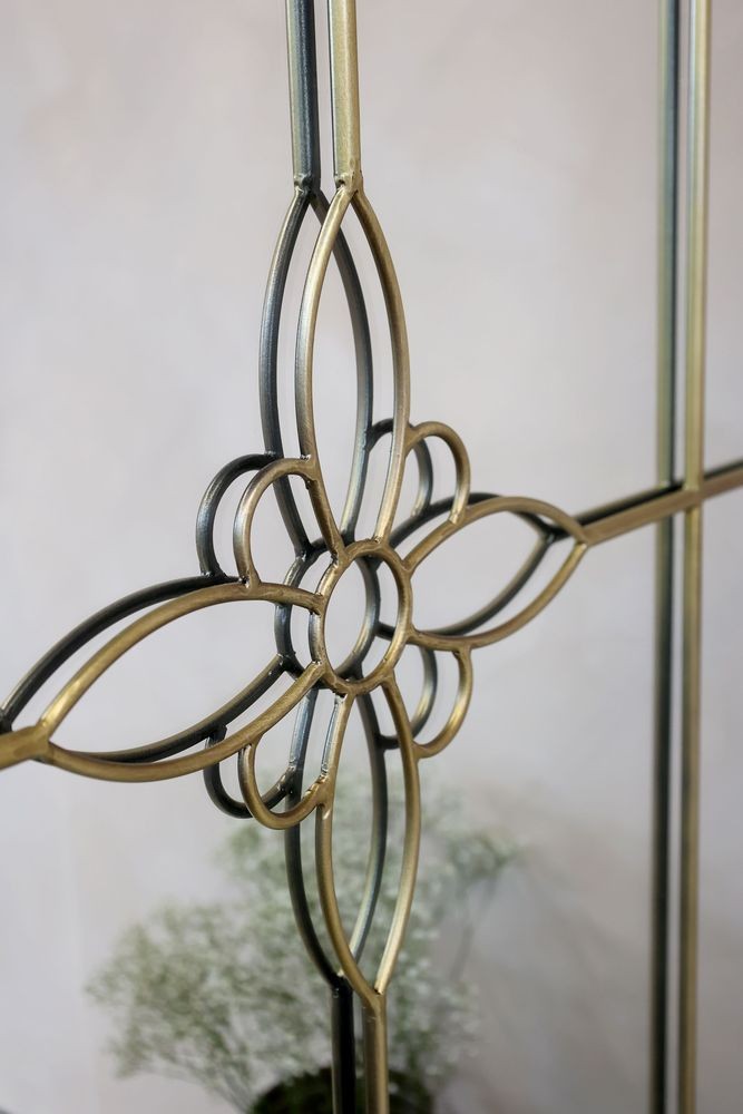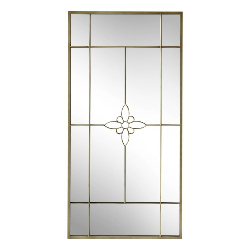 Design, který zaujme na první pohled Zrcadlo je zasazeno do pevného kovového rámu v nádherné povrchové úpravě "antik mosaz". Tato decentní zlatavá patina mu dodává starobylý, vintage vzhled. Plocha zrcadla je elegantně rozdělena tenkými liniemi připomínajícími klasická francouzská okna. Středobodem celého designu je jemný kovový ornament ve tvaru rozvinutého květu, který narušuje přísnou geometrii a dodává zrcadlu romantický a sofistikovaný nádech.