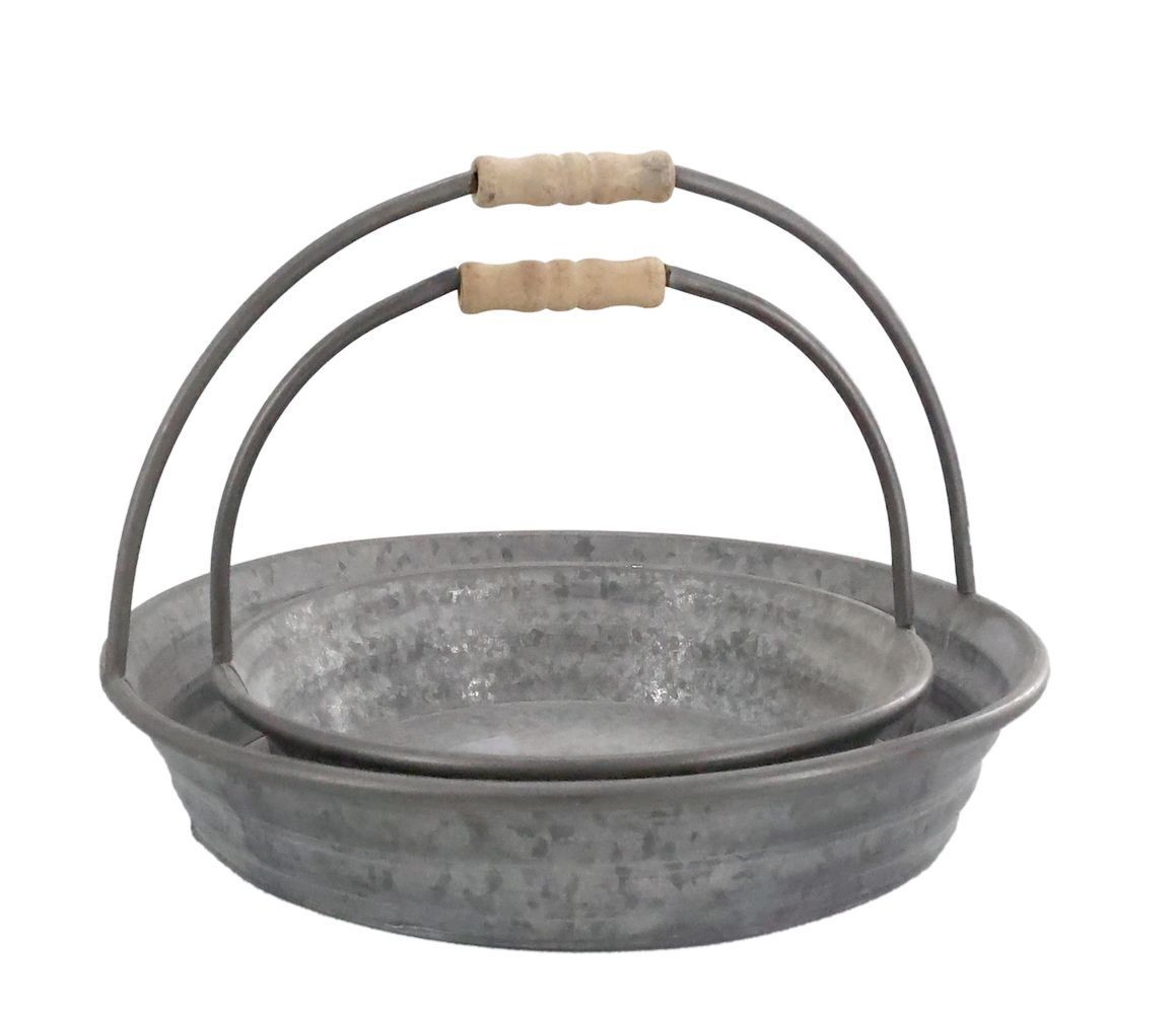 Design, ve kterém se snoubí kov a dřevo Podnosy zaujmou svým tradičním tvarem a zpracováním z odolného plechu s jemným horizontálním vroubkováním. Šedá povrchová úprava s lehkou antik patinou jim dodává autentický vzhled kousků, které už mají svůj příběh. Pevná klenutá rukojeť z kovu je v místě úchopu doplněna o hřejivý detail ze světlého dřeva, což zajišťuje nejen krásný kontrast materiálů, ale i pohodlné a bezpečné přenášení.