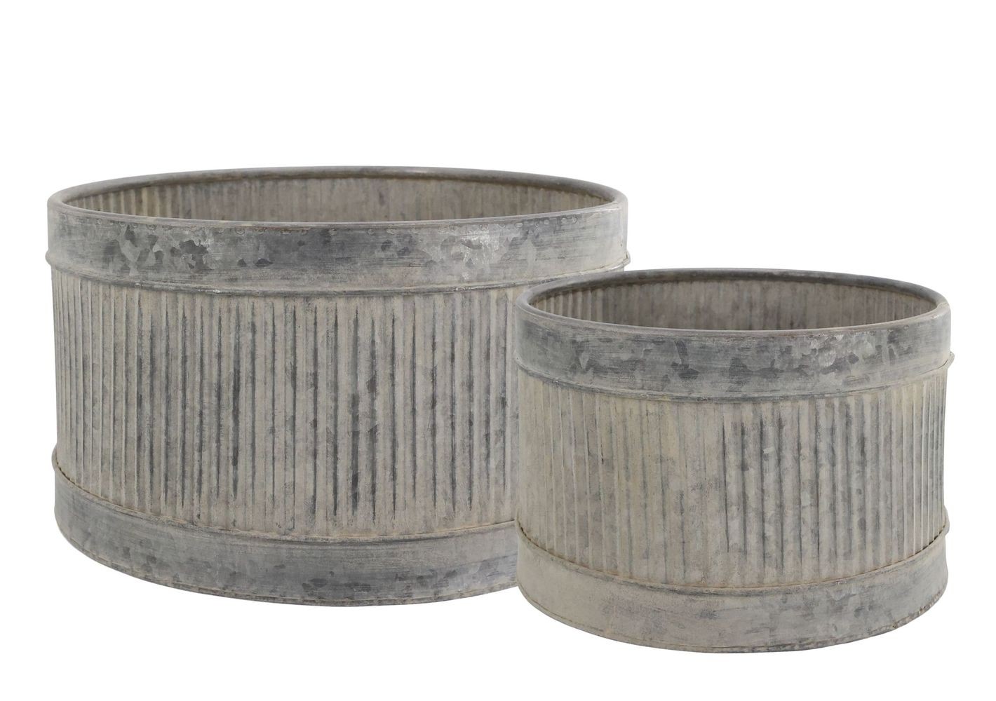 Vytvořte si doma, na terase nebo na zahradě dokonalou oázu s nádechem francouzského venkova! Tento set dvou plechových květináčů ve stylu „French Chic“ zaujme na první pohled svým výrazným drážkovaným povrchem a autentickou vintage patinou. Květináče působí, jako by měly svůj vlastní dlouhý příběh, a dodají vašemu prostoru jedinečné rustikální kouzlo.