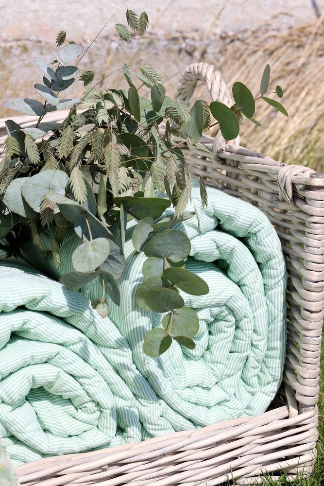 Čisté linie a dokonalé pohodlí Pokud dáváte přednost jemné eleganci před výraznými motivy, je tento kousek přesně pro vás. Nádherný, měkký odstín pastelově zelené zdobí velmi jemný, nenápadný proužek. Tradiční technika prošívání (quiltování) dodává přehozu nejen pevnost a delší životnost, ale především úžasnou plastickou strukturu. Přehoz je díky tomu krásně měkký, nadýchaný a mimořádně příjemný na dotek.