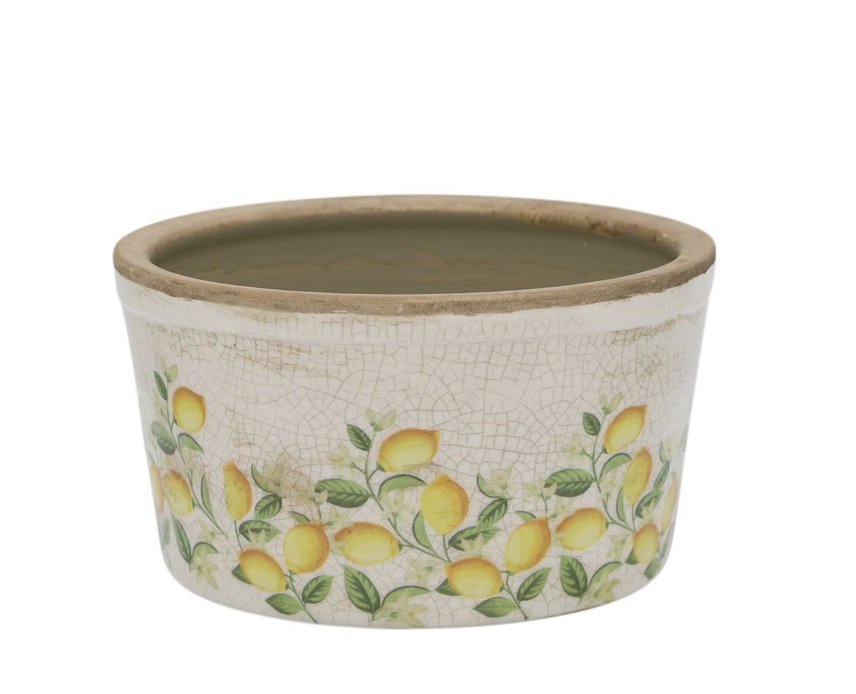 Dodejte svým rostlinám šmrnc a přeneste si kousek slunné Itálie přímo k vám domů! Tento okouzlující keramický květináč z oblíbené kolekce Limone Blossom je dokonalým spojením středomořského temperamentu a venkovské elegance. Světlý béžový základ s jemnou antik patinou a tmavším lemem tvoří perfektní pozadí pro svěží motiv šťavnatých žlutých citrónů a zelených lístků.