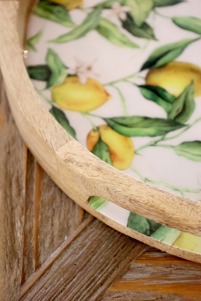 Vneste do svého domova kousek prosluněného Středomoří! Tento nádherný servírovací podnos z masivního mangového dřeva je zdobený svěžím motivem citrónů, který okamžitě rozzáří každou kuchyni, terasu či jídelnu.