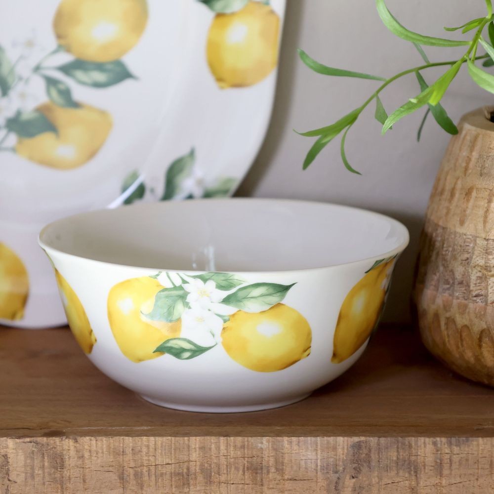 Tip: Kombinujte porcelánové misky s rustikálními dřevěnými doplňky ze stejné citronové série. Spojení bílého porcelánu a hřejivého dřeva s jednotným motivem vytvoří na stole neodolatelnou středomořskou atmosféru.