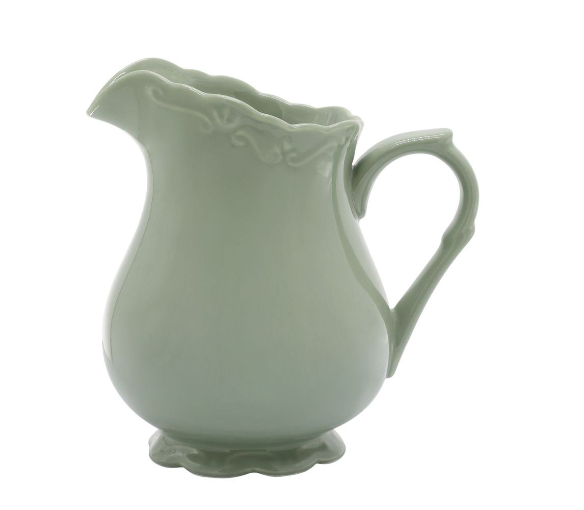 Vneste do svého domova kousek francouzského venkova s tímto okouzlujícím porcelánovým džbánem z kolekce Provence Lace Verte. Jeho jemný zelený odstín a elegantní vlnkovaný okraj připomínající krajku dodají vašemu prostírání romantický a rustikální nádech.