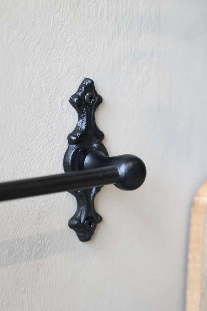 Závěsná tyč zaujme na první pohled svými precizně tvarovanými nástěnnými úchyty, které jsou zdobeny klasickými historizujícími motivy. Tmavá povrchová úprava "černá antik" s lehkou patinou dodává produktu hloubku a sofistikovanost. Díky této barvě se tyč skvěle kombinuje – perfektně vynikne v rustikálním a vintage prostředí, ale stane se i skvělým kontrastním prvkem v moderních či industriálně laděných interiérech.