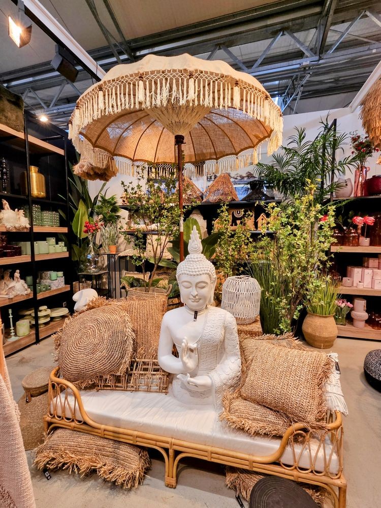 Jak ukazuje ilustrační fotografie, socha naprosto fantasticky ladí s přírodními materiály – doplňte ji bambusovým nábytkem, ratanovými stínidly, pampovou trávou nebo bujnými zelenými rostlinami a vytvořte si doma dokonalou oázu v populárním Boho nebo Zen stylu.